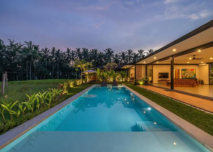 Gelegen in einer Entfernung von 6 km von der Goa Gajah, bietet die 5-Zimmer- Xanadu - 5Br Ubud Designer Villa, Pool With Rice Fields Views Zugang zu einem privaten Swimmingpool. Die Villa bietet eine Terrasse und liegt nur 15 Minuten Fahrweg vom Palast von Ubud entfernt.